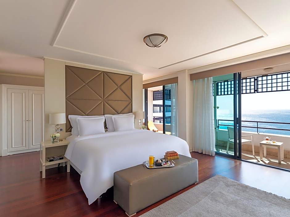 The spacious double room features air conditioning, soundproof walls, a balcony with sea views as well as a private bathroom boasting a walk-in shower.